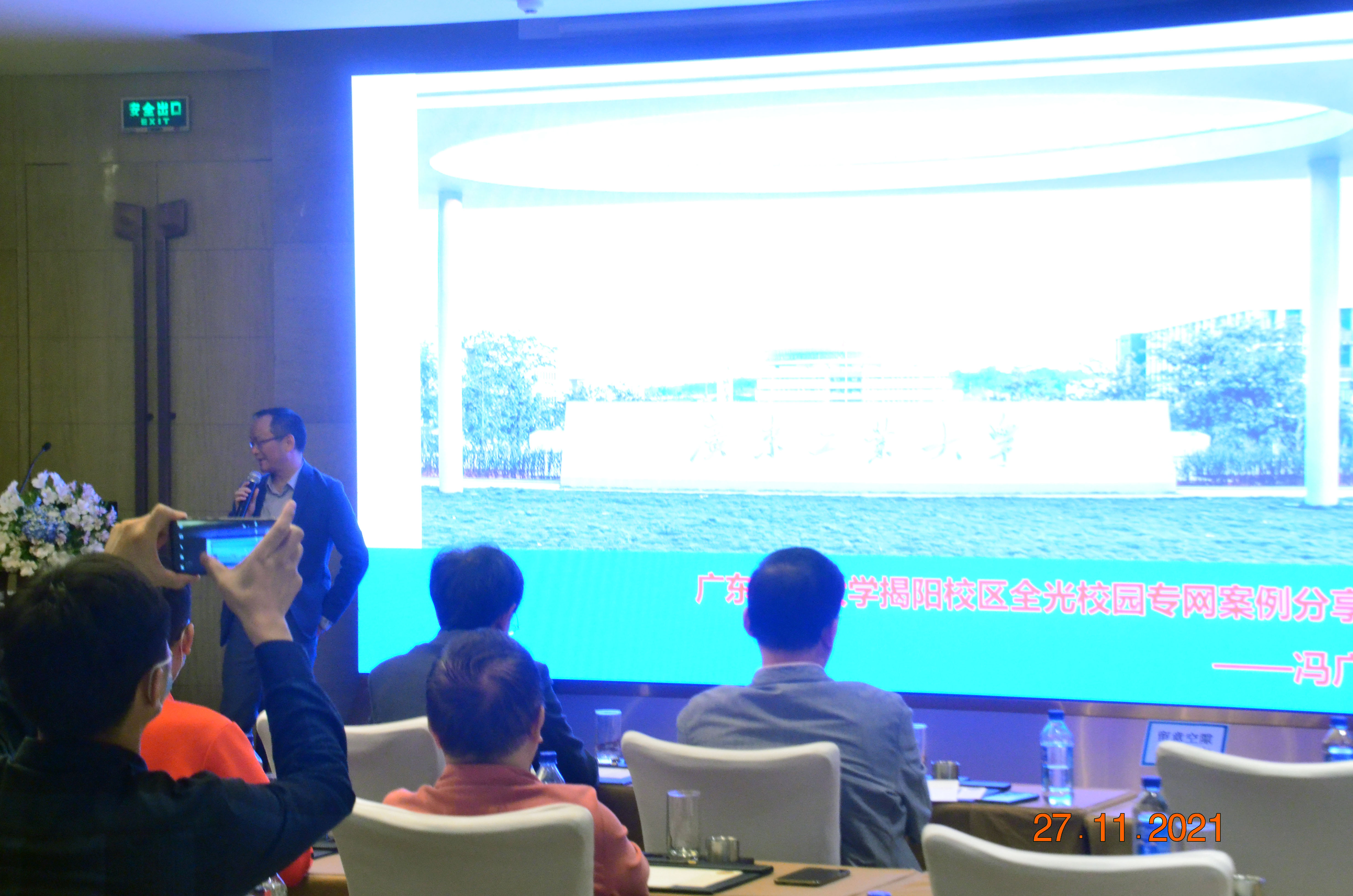 廣東工業大學(xué)馮廣對廣東工業大學(xué)揭陽校區的(de)智慧校園建設方案與使用效果做(zuò)了分享,并重點對創新采用的(de)POL全光校園專網的(de)建設、管理(lǐ)與使用體驗做(zuò)了專題分享,報告中重點指出廣工揭陽校區先試先行采用XPON技術取得較好的(de)成效,對學(xué)生開戶率的(de)提升,運維管理(lǐ)的(de)便捷,以及IPv6的(de)使用便利性反饋較好,獲得很好評價。